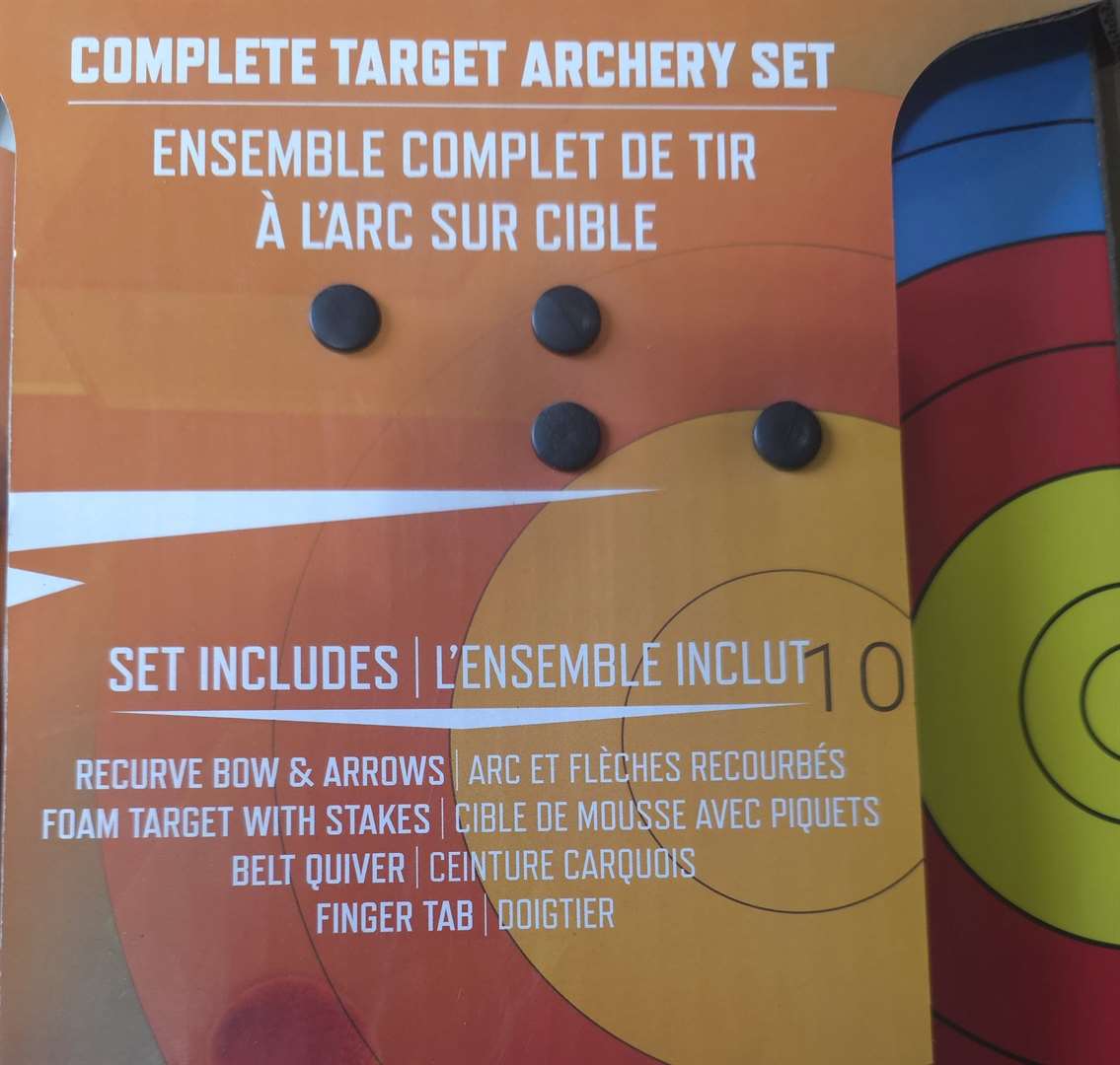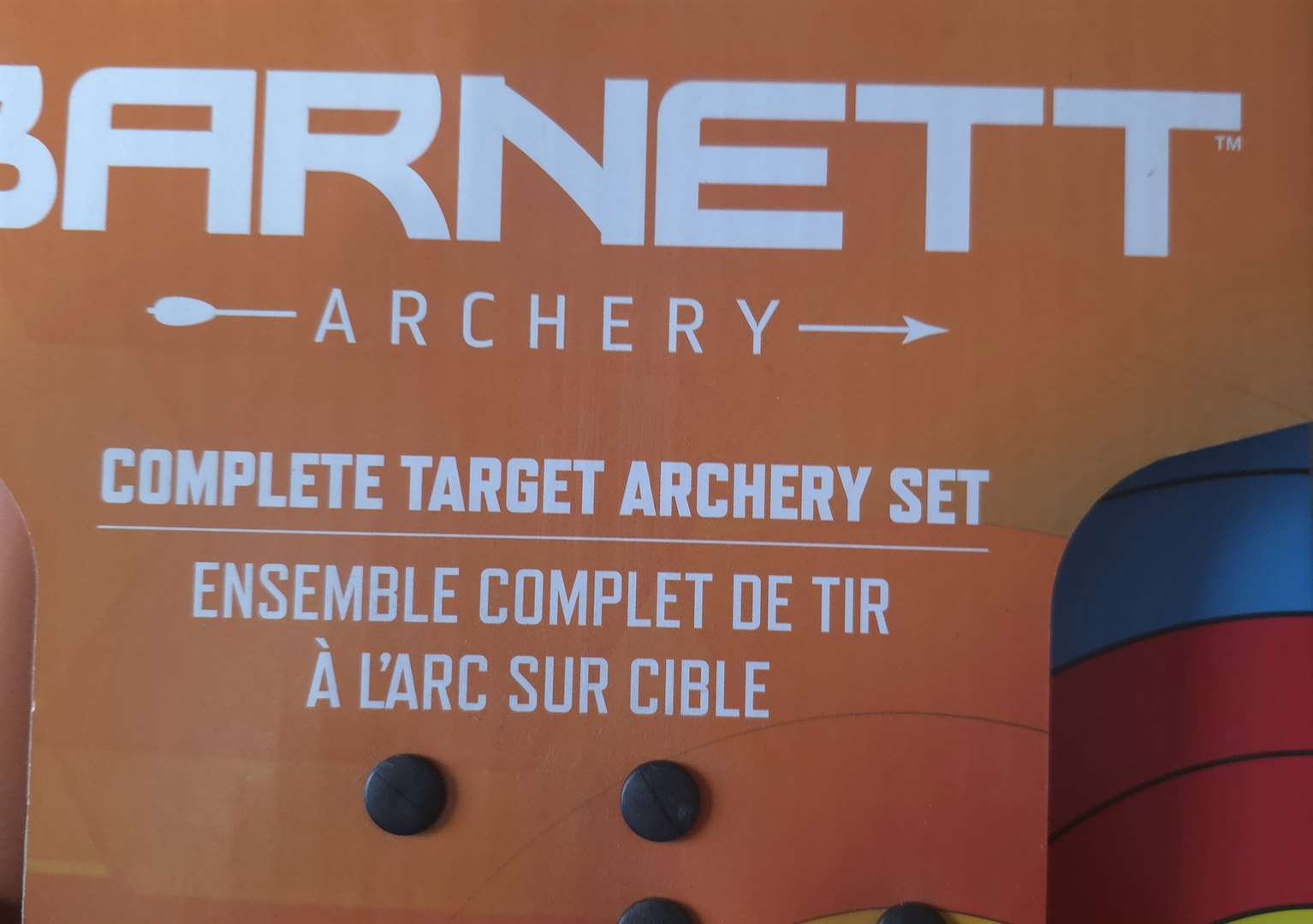 Barnett Archery Complete Target Archery Set. Set includes Recurve Bow and Arrows, Foam Target with Stakes. Belt Quiver, and Finger Tab. Fits Right or Left-Handed Shooters. If interested Email me.
