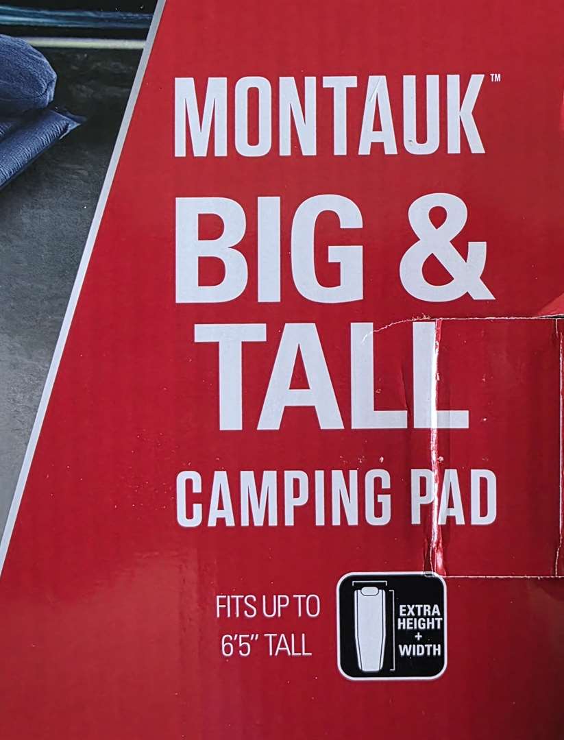 New Coleman Montauk Big and Tall Camping Pad. Self-Inflating. Free Flow valve System for Easy Inflation and Deflation. Fits up to 6'5" Tall. Size 78 inches X 30 inches.