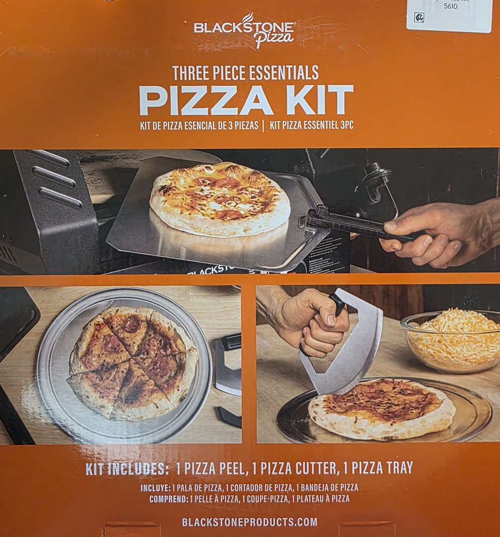 New - Blackstone Three Piece Essentials Pizza Kit. Kits Includes: 1 Pizza Peel, 1 Pizza Cutter, 1 Pizza Tray.