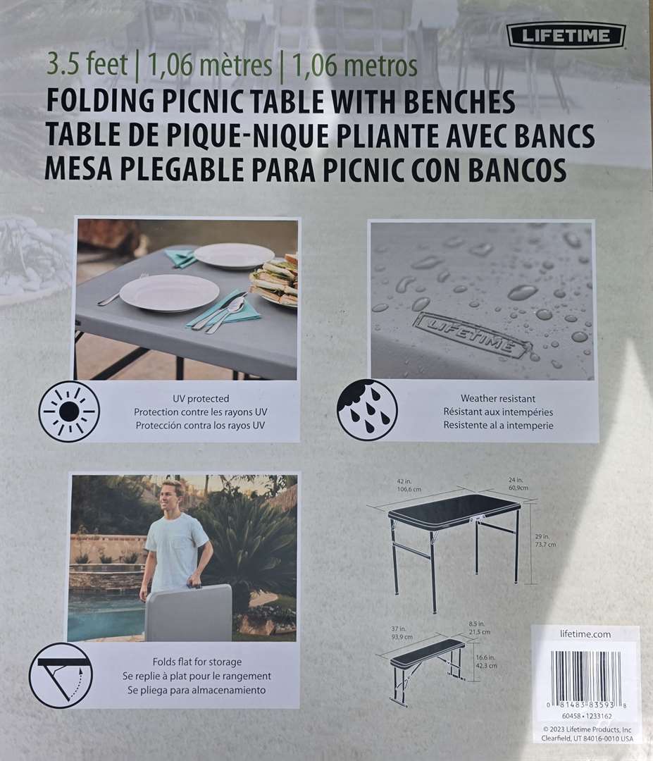 New in Box: Lifetime Folding Picnic Table and 2 Each Folding Benches