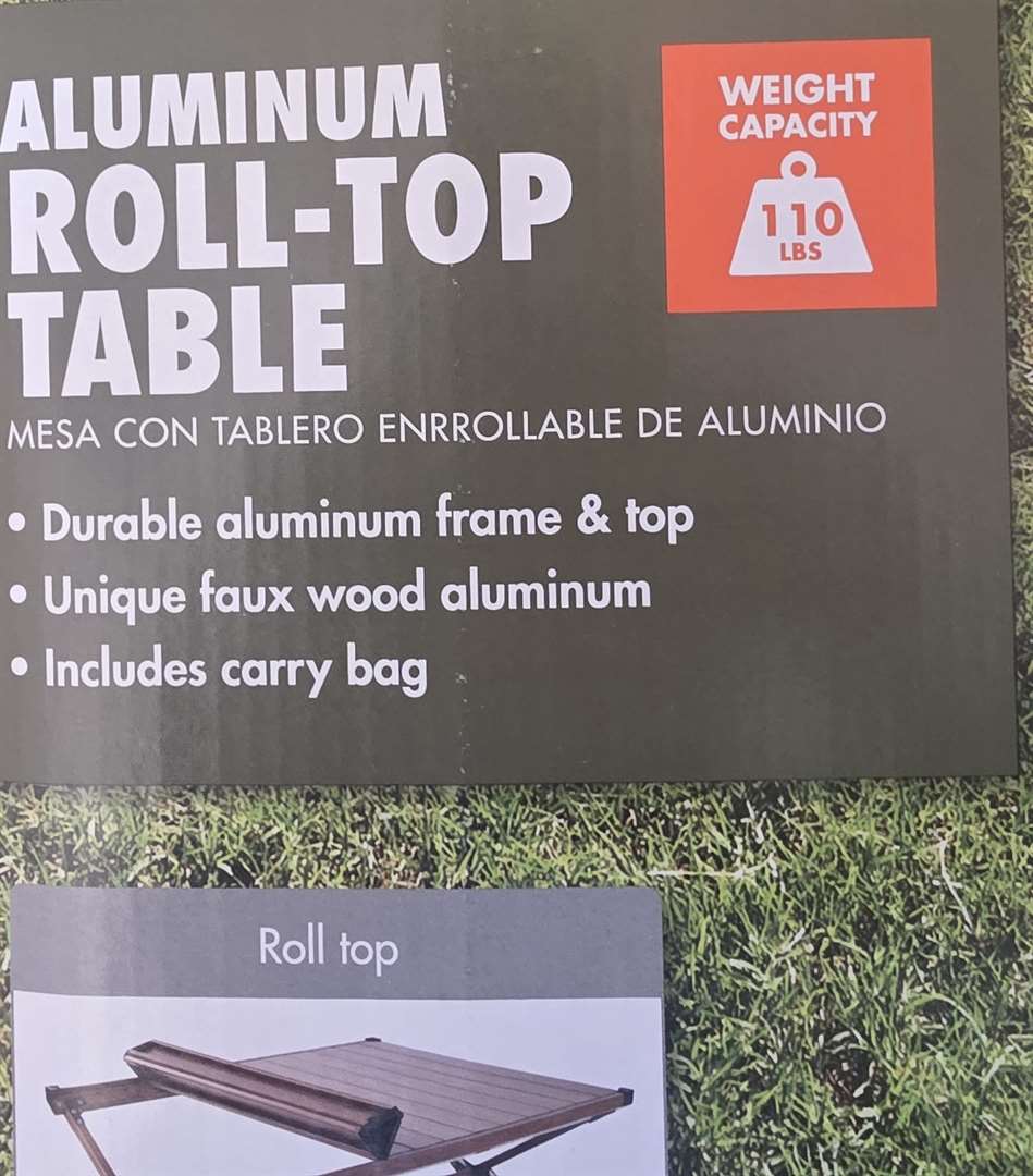 New-Ozark Trail Aluminum Roll-Top Table. 35 Inches W x 27.5 Inches D x 16.9 Inches H.