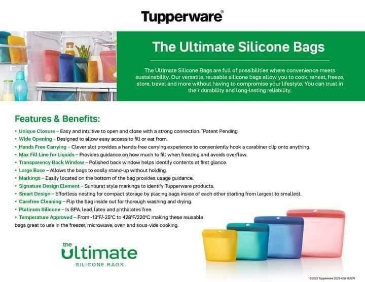 They are Freezer, Fridge, Oven, Microwave, and Dishwasher safe! I have been using these for about a year now! I’ve been patiently waiting for them to be released. I’ve put water in mine and shook it upside down with no leaks!! Yes, you can put liquid in them too!! These things are a must have!! ?? you can also use them for traveling too! These are Brand new order them online only ! or message if with in 60 miles i do free shipping.