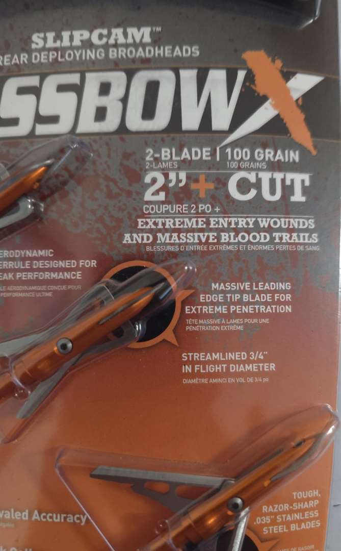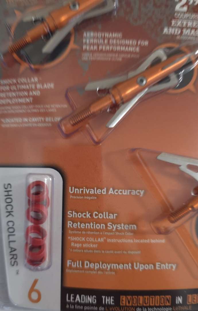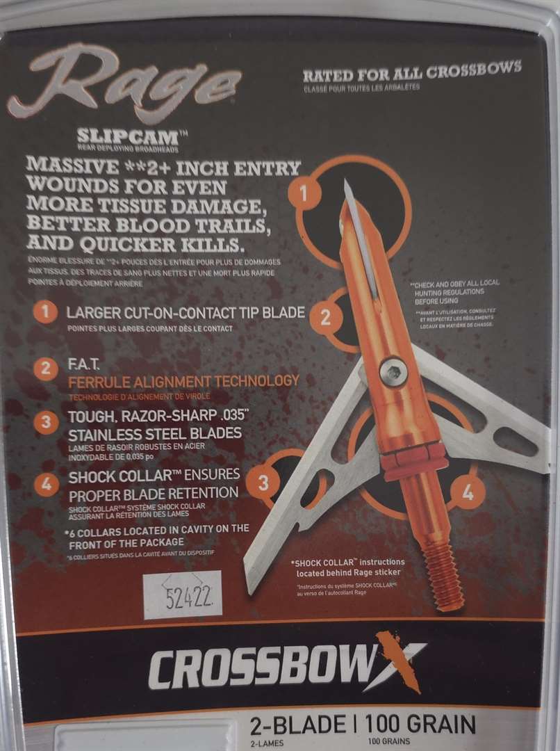 Rage-Crossbow X 2-Blade Broadheads. 100 Grains. 2 Inch Cut. Come with 6 Each Shock Collars.