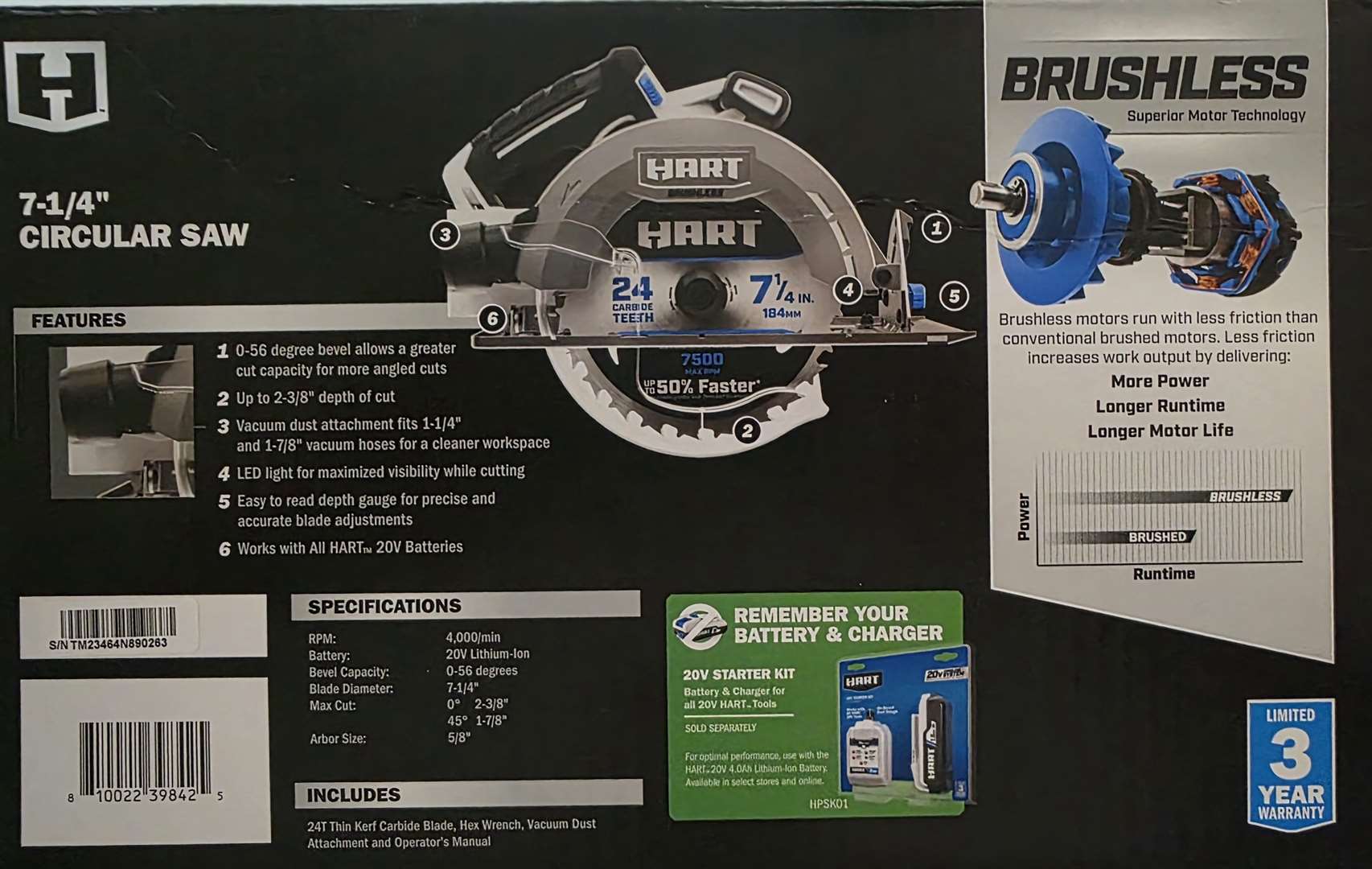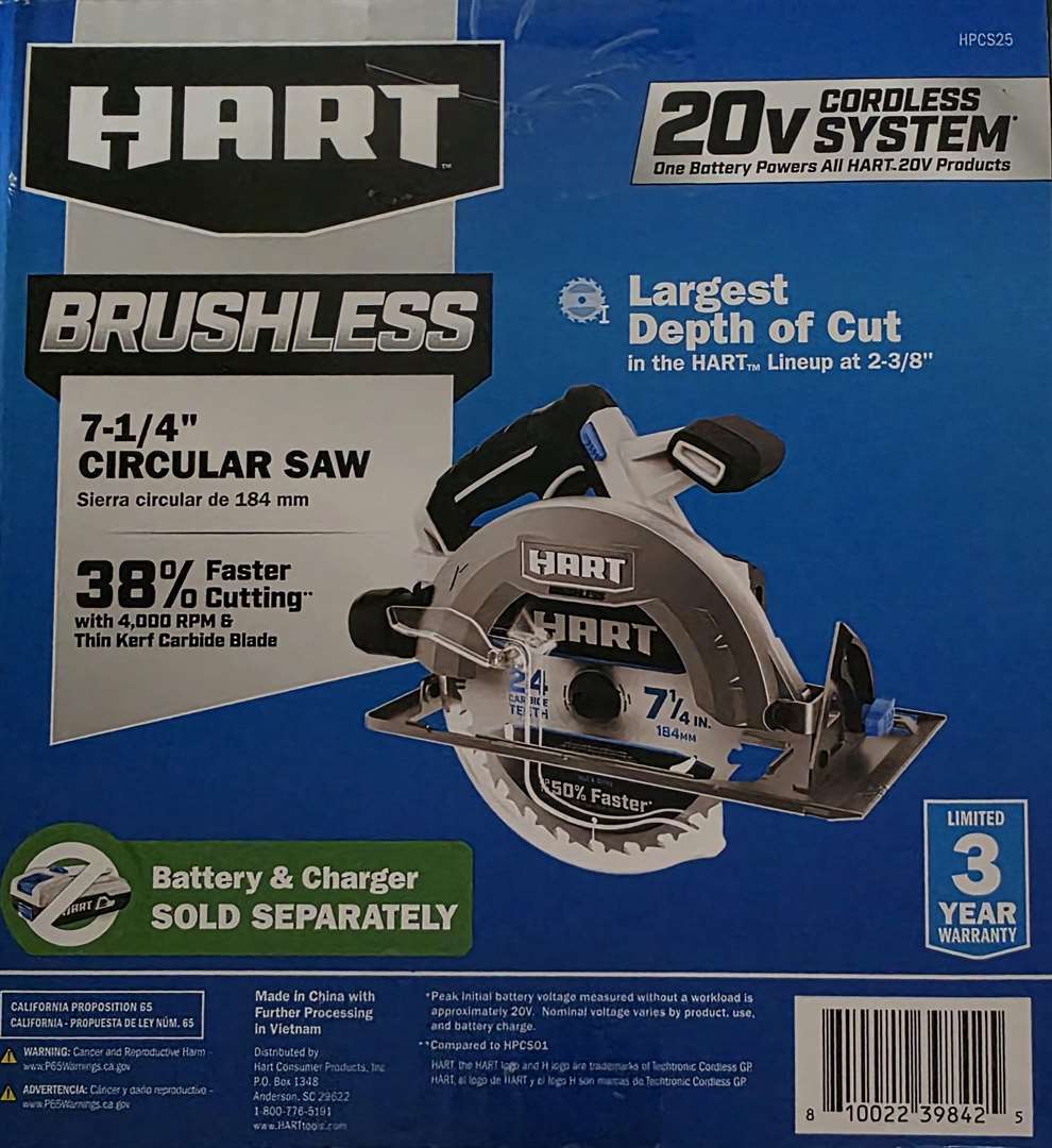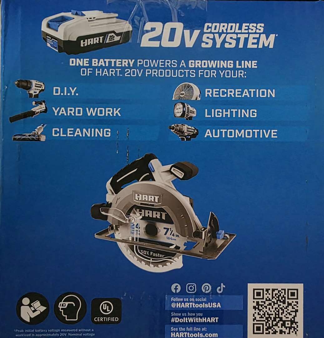 Hart Brushless 7-1/4 Inch Circular Saw 20 v Cordless System. Battery and Charger not included. If interested Email me.