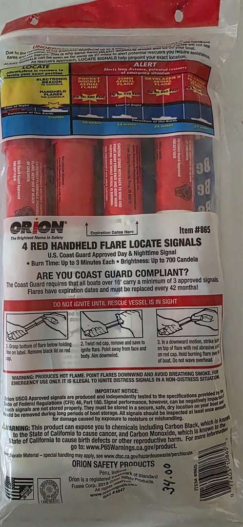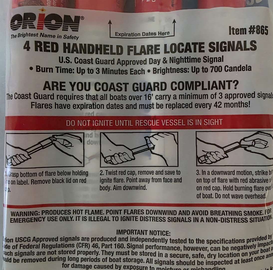 Orion Handheld Flares. 4 pack. USCG Approved Day and Night. for Use in Different Emergency Conditions. Be Bright. Be Seen. Be Saved. If Interested Email me.
