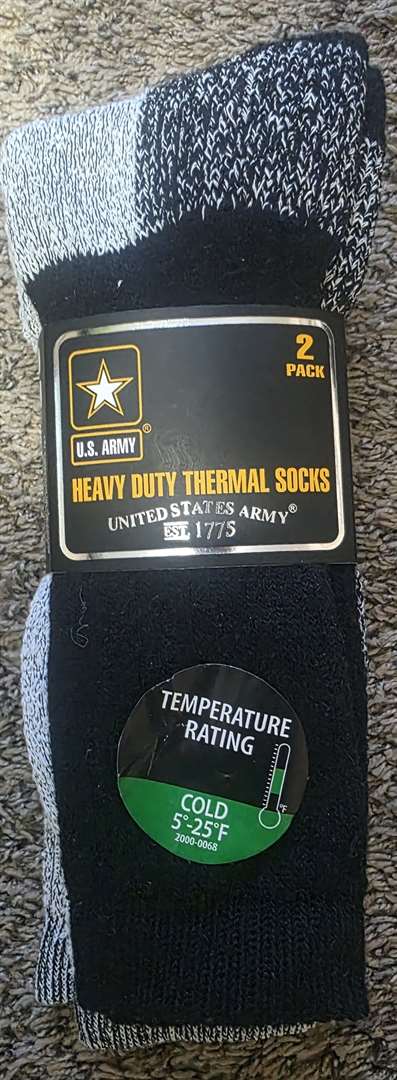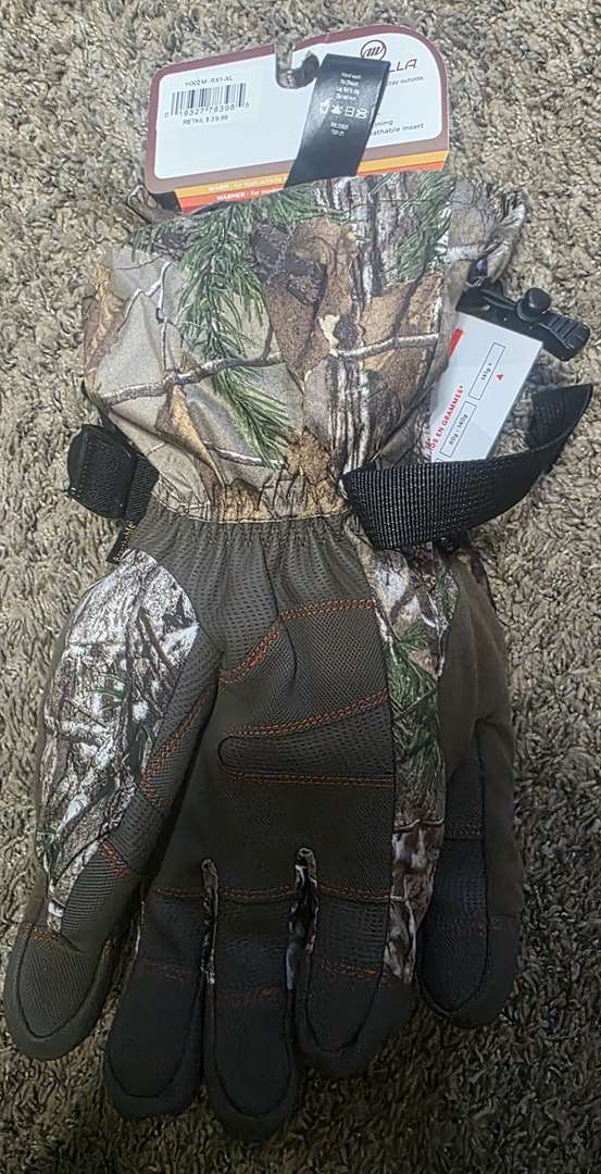 1. Manzella Warmest XL Men's Grizzly Gloves. Waterproof and insulated. $40 2. Arctic Shield Men's LG Mittens. $30 3. RealTree Edge Fleece Facemask. One Size Fits Most. Stretch Fleece for Warmth and Comfort. $10 Each. 4. 2 Pack Heavy Duty Thermal Socks. $15 Each. If interested Email me.