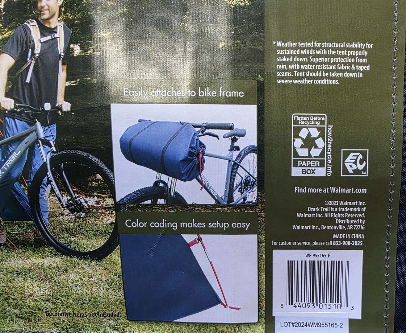 Ozark Trail 2-Person Tent with Oversized Vestibule. Great for Carrying with your Bike, Motorcycles, and Compact Car. Center Height 4'5" Call or email me.