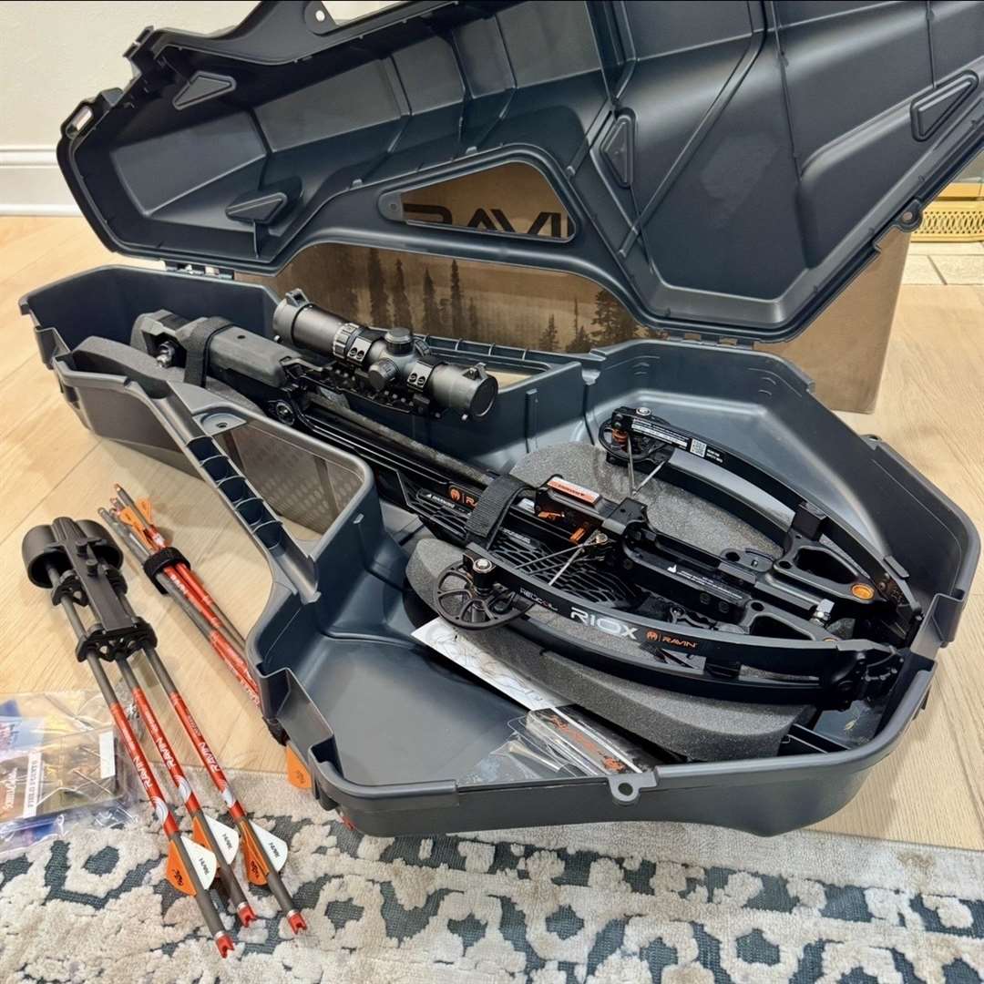 Ravin R10X crossbow package in excellent condition. Includes hard case, serving fluid, bolts, field points, Grim Reaper mechanical broadheads, and target. Purchased new from Scheels on 8/23/2025 and used for one Wyoming archery hunt. Complete, field-ready setup. Call or text 605 630-0451