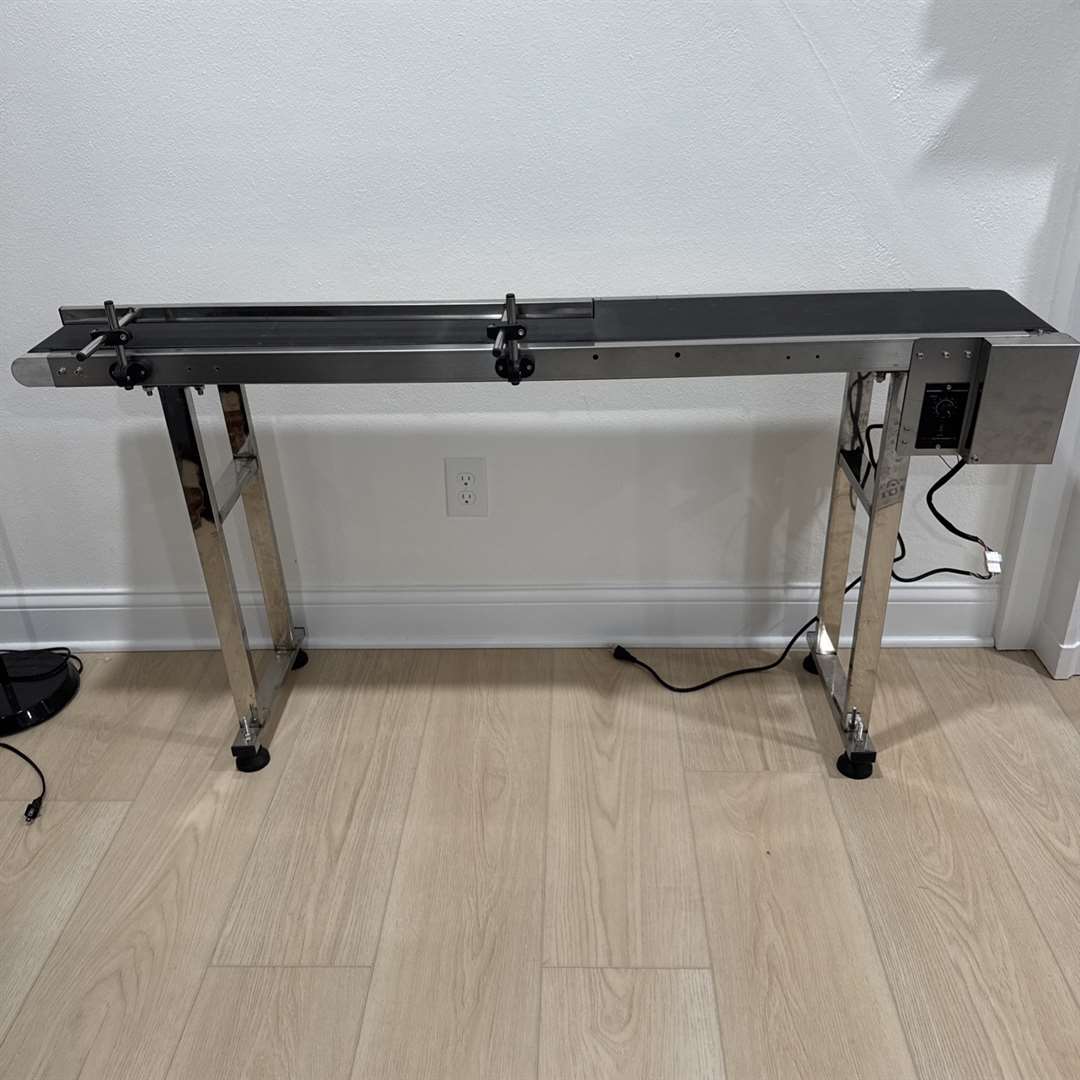 Item Model Number: MS15020 Belt Size: 59 x 7.8 in/1498.6 x 198 mm Table Width: 9.9 in/252 mm Load Capacity Limit: 82.67 Ibs/37.5 kg Material: 201 Stainless Steel Product Weight: 40.79 Ibs/18.5 kg Conveyor Belt Speed: Bi-Directional Variable Speed, 28 m/min Product Size: 58.86 x 14.17 x 35.91 in/1495 x 360 x 912 mm call or text 605 630 0451