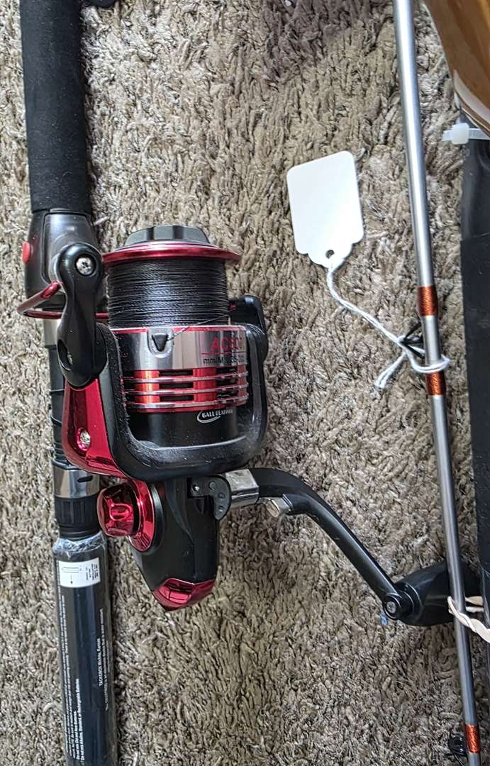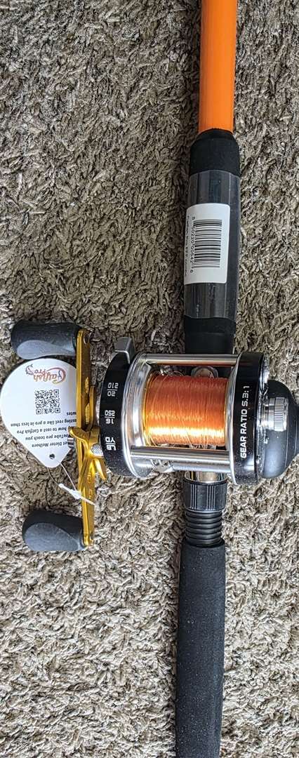 New-Catfish Rod and Reel Combos. 1. Berkley Fusion 6"6" Medium Action Rod. Spin Cast Reel with Gear Ratio 3:4.1 $30 2. Catfish Pro 7'6" Medium Heavy Action. Rod One Piece. Bait Castin Reel with Gear Ration 5:3.1 $80 3. Eagle Claw Feather Light Pro 8'6" Power Medium, Action Moderate Rod. Feather Light Pro 30 Bait Casting Reel with Line Counter. Gear Ration 3:8.1 $90 4. Shakespeare Catfish 6'6" Medium Heavy Action Rod. Spin Cast Reel. $45 5. Pole Tap 7'0" Medium Action Rod. Spinning Reel AC6000. Gear Ration 4:7.1 $60